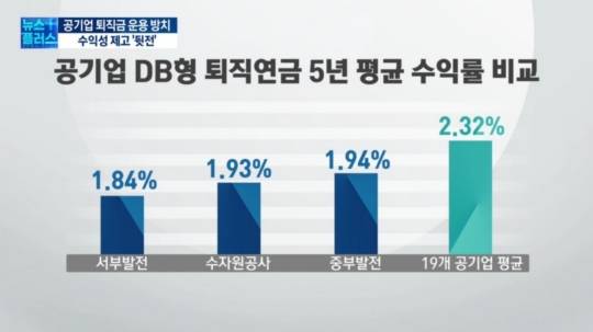 <기자> 19개 공기업들이 최근 5년 동안 평균 2.3%의 저조한 퇴직연금운용수익률을 기록한 가운데 수익률 하위 3개사는 2%에도 미치지 못했습니다.