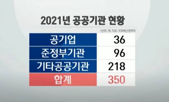 하지만 정부의 혈세가 투입된 공공기관은 공기업을 포함해서 준 정부기관, 기타 공공기관 등 350개에 달합니다.