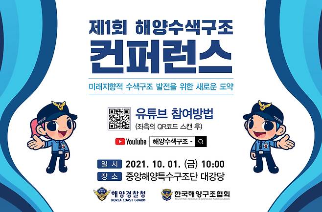 - 미래지향적 수색구조 발전을 위한 새로운 도약 -해양경찰청(청장 김홍희)은 오는 10월 1일, 수색구조의 정책·제도 발전을 도모하고, 해양경찰 수색구조 역량을 강화하기 위한 제1회 해양수색구조 컨퍼런스를 부산 중앙해양특수구조단에서 개최할 예정이라고 밝혔다.