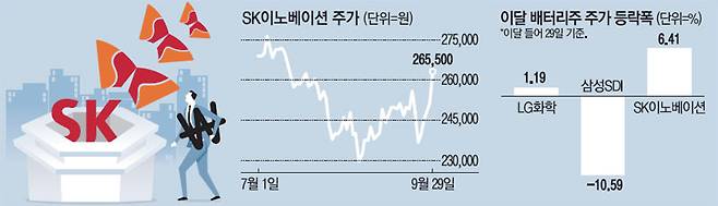 한편 SK이노베이션은 배터리 부문 분사에 따른 지분 희석 우려가 남아 있다. SK이노베이션은 지난 16일 임시 주주총회에서 주요 주주인 국민연금이 반대하는 상황에서 배터리, 석유개발사업(E&P)을 물적분할해 신설하는 안건을 통과시켰다. 이에 따라 배터리 부문 법인(LG에너지솔루션) 출범 후 상장을 추진하는 LG화학과 같은 절차를 밟게 됐다.