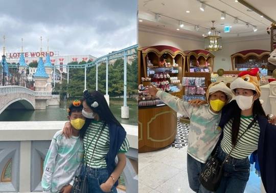 사진 속엔 첫째 아들 태하와 함께 놀이공원을 찾은 김성은 모습이 담겨있다. 김성은은 태하와 함께 캐릭터 모자를 쓰고 어깨동무를 하는 등 다정한 면모를 보여주고 있다.