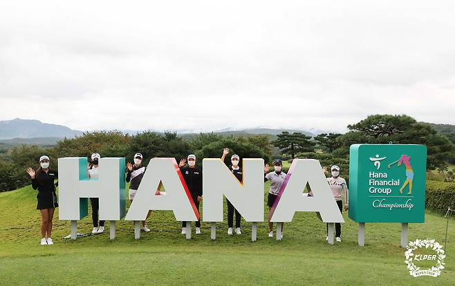 (서울=뉴스1) = 29일 경기도 포천 아도니스CC에서 열린 '하나금융그룹 챔피언십' 공식 포토콜에서 출전 선수들이 포즈를 취하고 있다. (KLPGA 제공) 2021.9.29/뉴스1