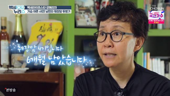 (엑스포츠뉴스 박예진 인턴기자) '백세누리쇼' 강애리자가 남편이 항암치료 중이라고 밝혔다.