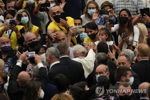 leaves after his weekly general audience in the Paul VI Hall at the Vatican, Wednesday, Sept. 29, 2021. (AP Photo/Alessandra Tarantino)