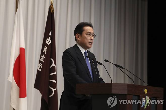 (도쿄 AP=연합뉴스) 29일 일본 집권 자민당 총재 선거에서 당선된 기시다 후미오 전 외무상이 도쿄 자민당사에서 기자회견을 하고 있다. 이날 선거에서 자민당 제27대 총재로 선출된 기시다는 다음 달 4일 소집되는 임시국회에서 스가 요시히데 총리에 이어 제100대 일본 총리로 선출된다.