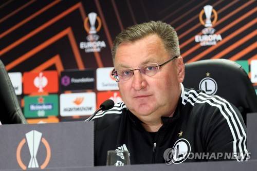 epa09495095 Legia Warsaw's head coach Czeslaw Michniewicz attends a press conference in Warsaw, Poland, 29 September 2021. Legia Warsaw will face Leicester City in their UEFA Europa League soccer match on 30 September 2021. EPA/Leszek Szymanski POLAND OUT