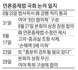 - 與, 반대 여론에 무릎 "언론법 연내처리 안해"