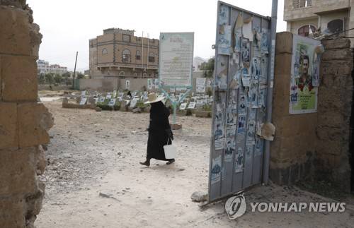 epa09495103 A woman walks through a cemetery dedicated to slain Houthi fighters who are allegedly killed in the country's ongoing conflict, in Sana'a, Yemen, 29 September 2021. Over 130 people have died, most of them were Houthi fighters, in the last two days of intense fighting between Saudi-backed Yemeni forces and the Houthis for control of the oil-rich province of Marib. The Houthis continue to intensify their ground offensive to seize Marib, the government's last northern stronghold, claiming the lives of hundreds of fighters in September so far. EPA/YAHYA ARHAB