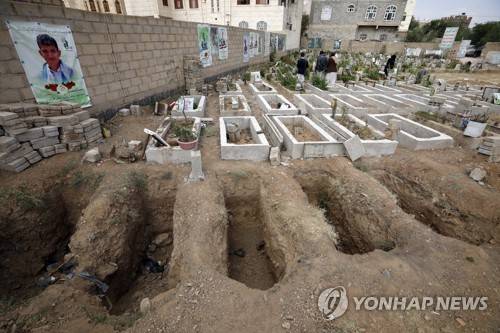 epa09495107 Graves are freshly dug at a cemetery dedicated to slain Houthi fighters who are allegedly killed in the country's ongoing conflict, in Sana'a, Yemen, 29 September 2021. Over 130 people have died, most of them were Houthi fighters, in the last two days of intense fighting between Saudi-backed Yemeni forces and the Houthis for control of the oil-rich province of Marib. The Houthis continue to intensify their ground offensive to seize Marib, the government's last northern stronghold, claiming the lives of hundreds of fighters in September so far. EPA/YAHYA ARHAB