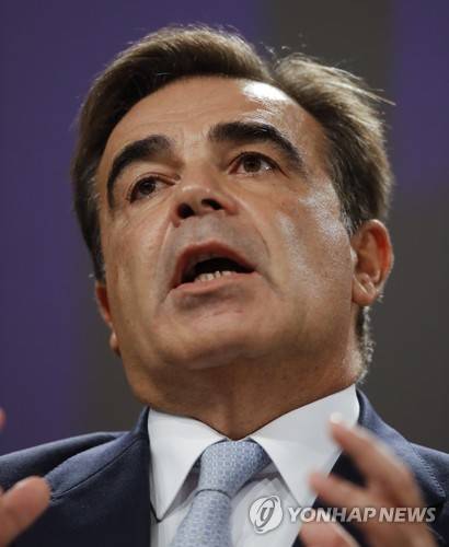 epa09495118 European Commission Vice-President for Promoting our European Way of Life, Margaritis Schinas during press conference on developments under the New Pact on Migration and Asylum and stepping up the fight against migrant exploitation in Brussels, Belgium, 29 September 2021. EPA/OLIVIER HOSLET