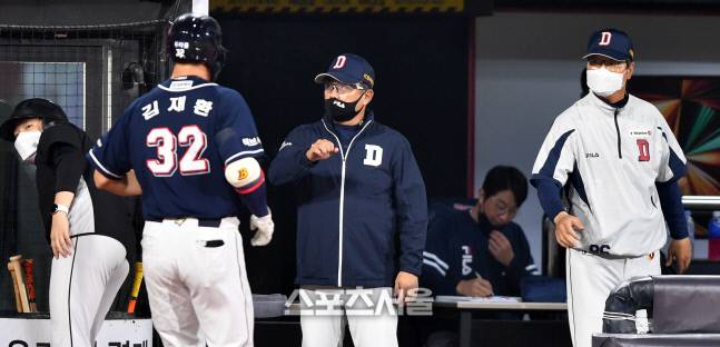 '김태형 감독 축하' 김재환[포토]