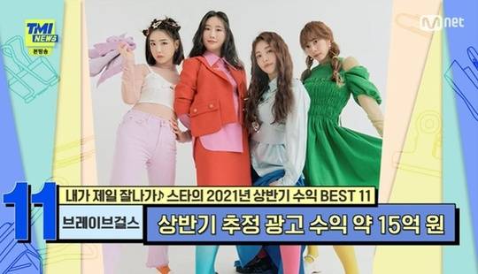 이날 방송에서 브레이브걸스는 2021년 상반기 수익 BEST 11위 스타에 올랐다.