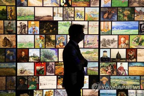 epa09495128 A visitor is seen at the 'Meet Vincent Van Gogh Experience' exhibition in Madrid, Spain, 29 September 2021. The exhibition will be open to public from 30 September to 18 October 2021. EPA/David Fernández