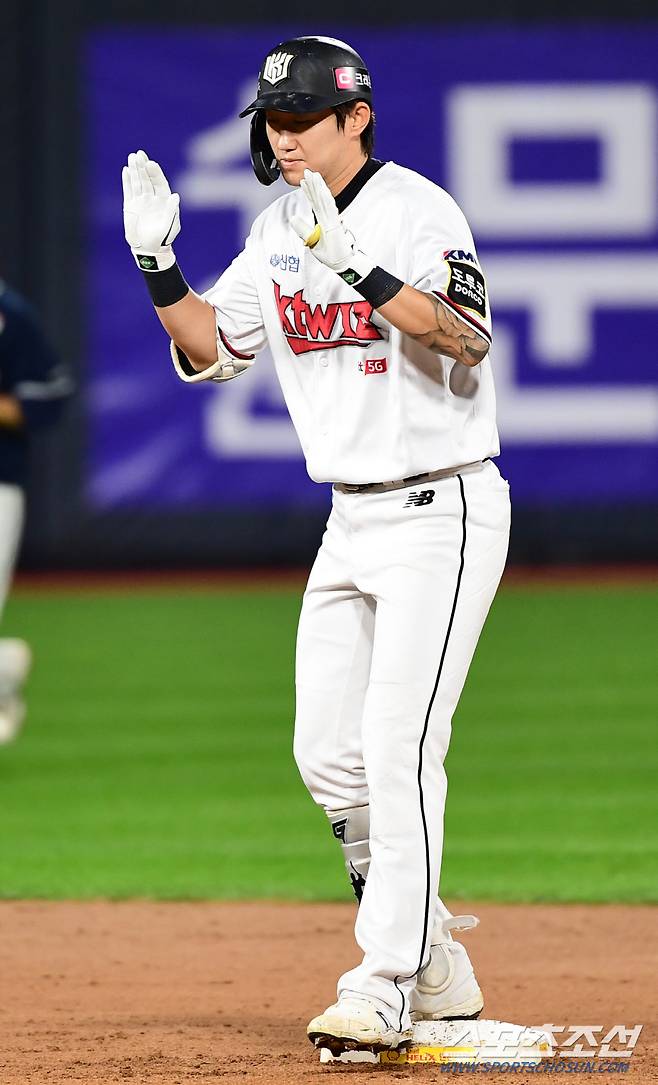 2021 KBO리그 두산베어스와 kt위즈의 29일 수원kt위즈파크에서 열렸다. 김민혁이 KT 7회말 2사 1루에서 좌전안타를 치고 2루까지 진루하고 있다. 수원=최문영 기자 deer@sportschosun.com /2021.09.29/