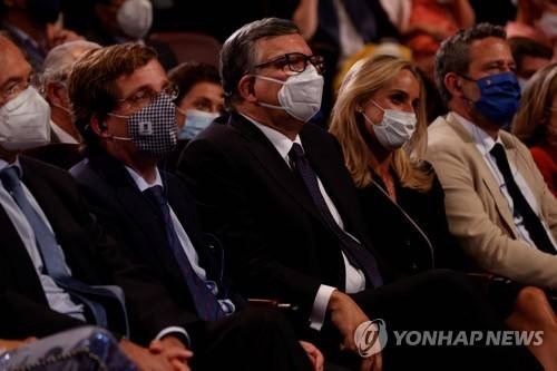 epa09495142 Madrid's mayor Jose Luis Martinez-Almeida (2L), former European Commission president and Portugal Jose Manuel Durao Barroso (C) attends to the National Convention of the Popular Party held in Madrid, Spain, 29 September 2021. EPA/J.J. Guillen