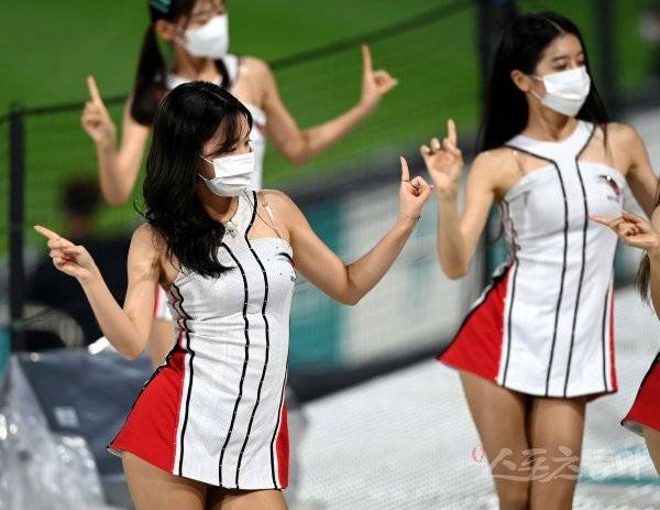 kt 치어리더가 화려한 공연을 선보이고 있다.