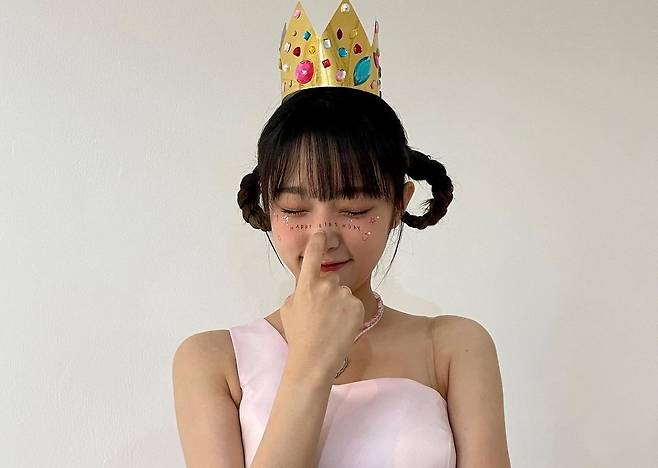 사진 속 최예나는 리본 포인트의 베이비핑크 드레스를 입고 사랑스러움을 뽐냈다. 머리에 왕관을 쓴 그는 귀여운 오리 장식이 올려진 케이크를 들고 행복한 미소를 지었다.
