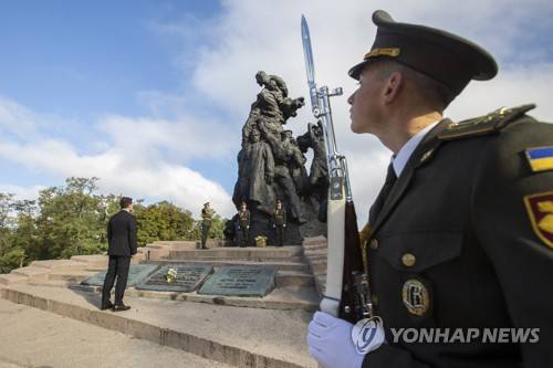 Ukrainian President Volodymyr Zelensky attends Commemoration ceremony at Babi Yar massacre monument in Kiev