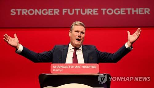 epa09495253 Britain's Labour leader Keir Starmer delivers his keynote speech on the final day of the annual Labour Party conference in Brighton, Britain, 29 September 2021. EPA/FACUNDO ARRIZABALAGA