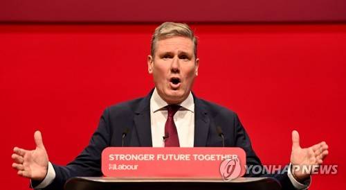 epa09495263 Britain's Labour leader Keir Starmer delivers his keynote speech on the final day of the annual Labour Party conference in Brighton, Britain, 29 September 2021. EPA/FACUNDO ARRIZABALAGA