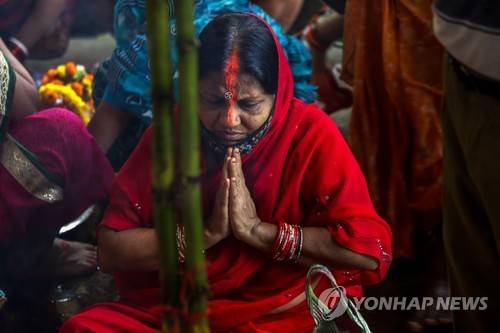 Married women perform rituals during observance of Hindu festival Jivitputrika or Jitiya Vrat on the banks of the Hooghly River in Kolkata, India, Wednesday, Sept. 29, 2021. On the second of this three day festival, the women observe fasting for the well-being of their family. The festival is primarily observed in the Indian states of Bihar, Jharkhand, Uttar Pradesh and also in Nepal. (AP Photo/Bikas Das)