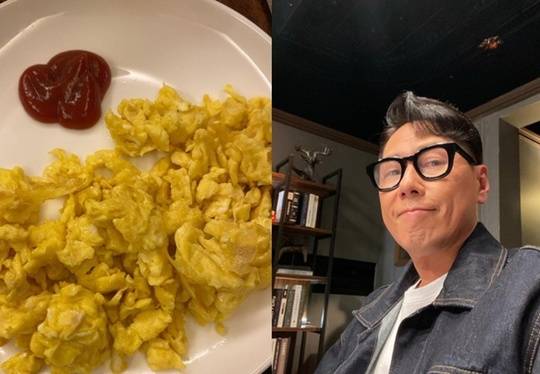 사진 속엔 딸 라임-라오 자매가 아빠 윤종신을 위해 만들어준 에그 스크램블이 담겨있다. 하얀 접시 위에 에그 스크램블과 한 편에 케첩까지 놔주는 자매의 센스가 훈훈함을 안겼다.