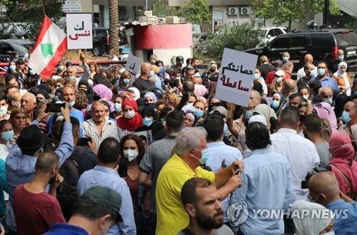epa09495288 Anti-government activists and families of Beirut Blast victims take part in a protest, in front the Justice Palace in Beirut, Lebanon, 29 September 2021, to support the Public Prosecutor, Judge Tareq Bitar, under slogan 'Tariq Bitar, the truth will protect him and the people will redeem him'. Hezbollah security official Wafiq Safa, as well as some suspected parliamentarians and ministers, who were summoned by the public prosecutor and refused to attend, reportedly threatened Bitar on the pretext that the investigation was politicized. EPA/NABIL MOUNZER