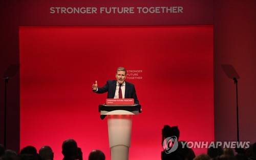 epa09495311 Britain's Labour leader Keir Starmer delivers his keynote speech on the final day of the annual Labour Party conference in Brighton, Britain 29 September 2021. EPA/FACUNDO ARRIZABALAGA