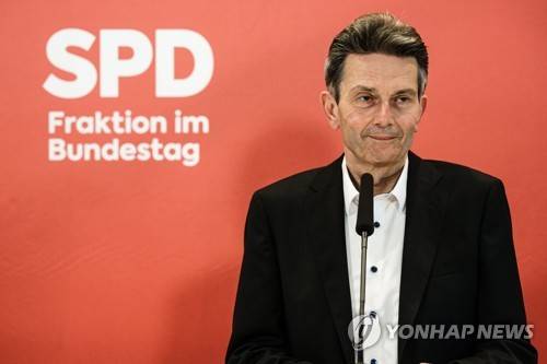 epa09495322 Former and newly elected Social Democratic Party (SPD) Bundestag faction chairman Rolf Muetzenich delivers a statement at the Reichstag building following a faction meeting of the SPD at the German Parliament in Berlin, Germany, 29 September 2021. German Social Democratic Party (SPD) re-elected former faction leader Rolf Muetzenich after the German Federal Election, that took place on 26 September 2021. EPA/CLEMENS BILAN