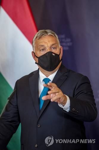 epa09495438 Hungarian Prime Minister Viktor Orban attends a press conference with Czech Prime Minister Andrej Babis after their meeting in Usti nad Labem, Czech Republic, 29 September 2021. Orban is on an official visit to the Czech Republic. EPA/MARTIN DIVISEK