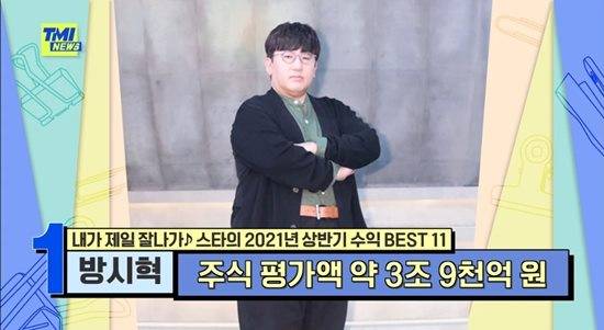 (엑스포츠뉴스 김예은 기자) 방시혁이 상반기 수익 1위 스타에 이름을 올렸다.