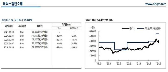 NH證 "이녹스첨단소재, 단기·중장기 실적 호조세"
