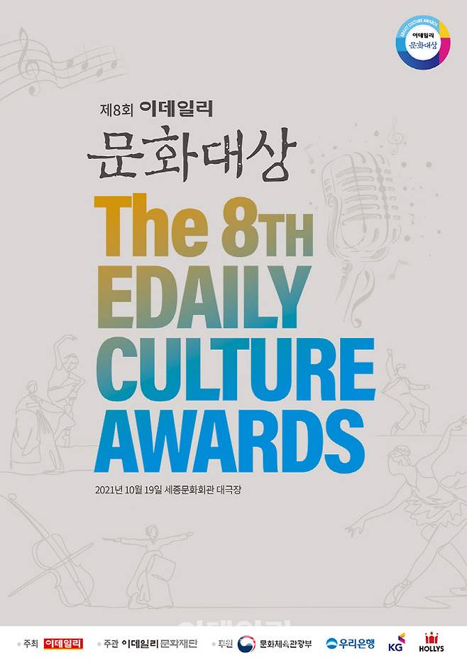 이데일리가 주최하고 이데일리 문화재단이 주관하는 제8회 이데일리 문화대상은 오는 10월 19일 오후 7시 서울 세종문화회관 대극장에서 열린다.