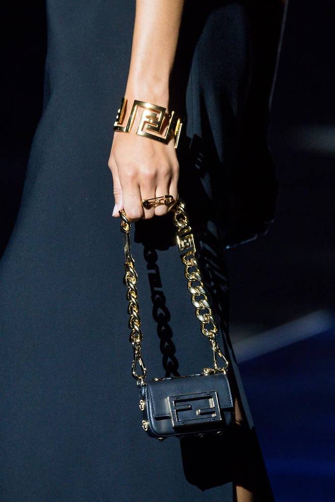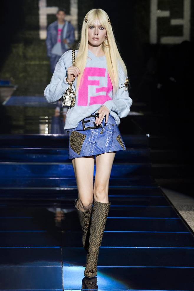 베르사체 바이 펜디(VERSACE BY FENDI), 펜디 바이 베르사체(FENDI BY VERSACE), 라는 두 개의 컬렉션으로 구성되는데, 킴 존스가 디자인한 베르사체 바이 펜디는 1990년대 중후반의 브랜드 스토리에서 영감 받아 펜디의 모노그램과 베르사체의 그리스 키 모티브를 조합한 우아한 룩을 완성했다. 도나텔라가 디자인한 펜디 바이 베르사체는 두 브랜드의 시그니처 요소를 활용해 자유롭고 반항적인 펑크 록 무드를 한껏 드러냈다. 세이프티 핀, 펜디의 FF로고를 결합한 체인 스트랩 등이 특히 눈길을 끌었다.