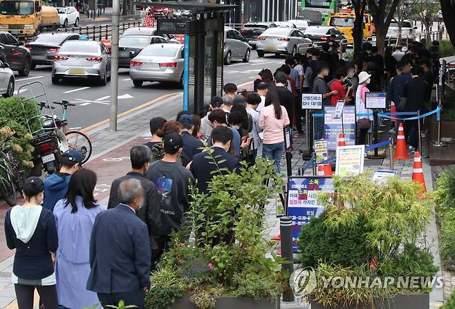 (서울=연합뉴스) 임헌정 기자 = 국내 신종 코로나바이러스 감염증(코로나19) 확산세가 좀체 잦아들지 않는 가운데 30일 오전 서울 송파구 보건소 선별진료소에서 시민들이 검사를 기다리고 있다.