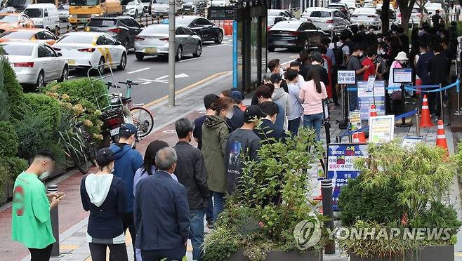 (서울=연합뉴스) 임헌정 기자 = 국내 신종 코로나바이러스 감염증(코로나19) 확산세가 좀체 잦아들지 않는 가운데 30일 오전 서울 송파구 보건소 선별진료소에서 시민들이 검사를 기다리고 있다.