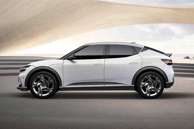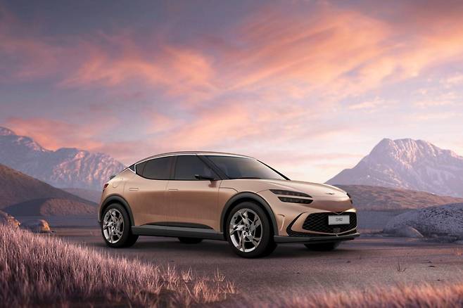 차명은 기존 내연기관 라인업과 동일한 체계를 따른다. 별도의 전기차 구분을 하지 않는 네이밍 철학에 맞춰 결정했다. 새 차는 제네시스의 디자인 정체성인 역동적인 우아함을 바탕으로 쿠페형 CUV 스타일의 날렵하고 다이내믹한 모습을 반영했다. 앞은 정제되고 볼륨감 넘치는 차체에 더욱 진보적인 이미지를 갖춘 두 줄 디자인의 쿼드램프를 넣었다.
