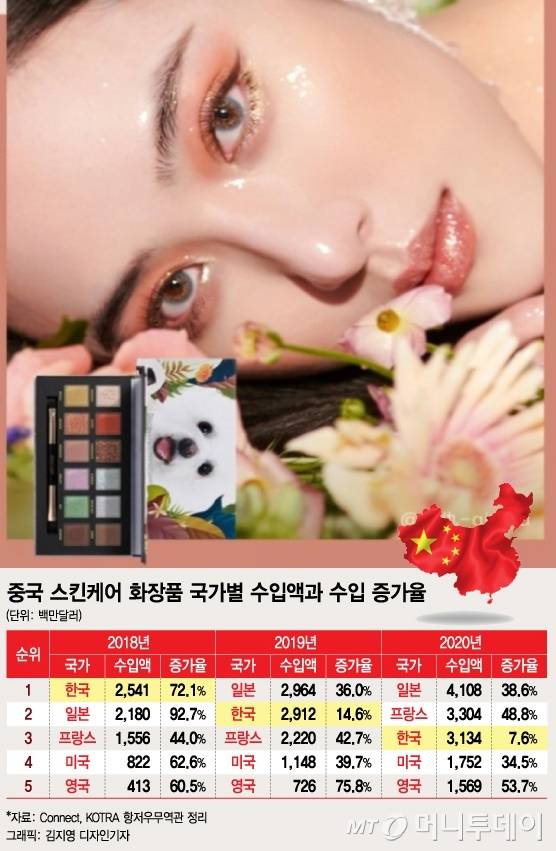 김주덕 성신여대 뷰티산업학과 교수는 "2018년까지 중국에서 K-뷰티가 수입 1위 브랜드 자리를 유지했으나 이후 유럽과 일본 브랜드에 점점 밀리고 있다"며 "중국 정부는 한한령 이전부터 화장품 산업 발전을 위해 K-뷰티의 기술력을 도입하고 연구원을 영입하는 등 화장품 산업 육성에 대한 의지가 확고했다"고 분석했다.