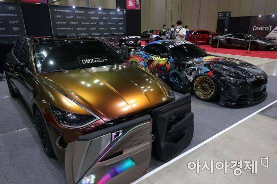 자동차 애프터마켓 전문 전시회 ‘2021 오토살롱위크’가 30일 경기 킨텍스에서 열렸다. 튜닝카가 눈길을 끌고 있다. 전시는 다음 달 3일까지 이어진다. /문호남 기자 munonam@