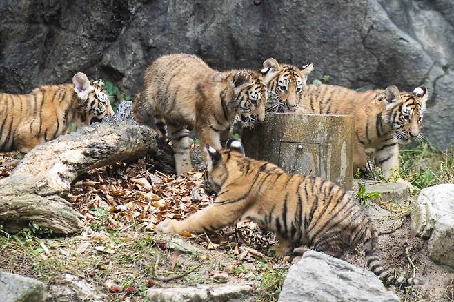멸종위기종 1급인 한국호랑이는 보통 한 번에 2~3마리 정도만 출산하는 것으로 알려져 있어, 5남매가 한 번에 태어난 것은 세계적으로도 매우 희귀한 사례다.