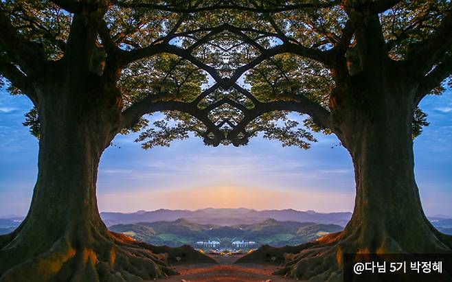 지금은 사랑나무라는 이름답게 많은 연인이 찾는 부여 가볼 만한 곳으로도 유명한데요. 해가 지는 시간이 되면 하늘이 붉게 물들면서 사랑나무의 안쪽도 붉어집니다. 이때 찍은 반쪽의 하트사진을 좌우로 붙이면 온전히 붉은 하트가 되는 사진을 만들 수 있답니다.