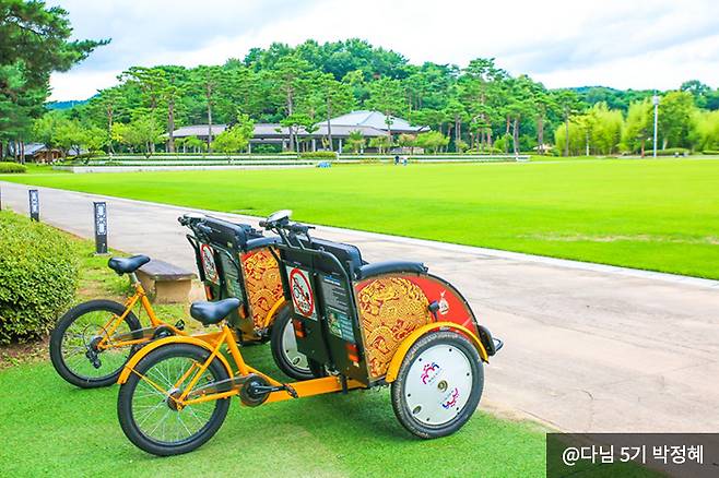 부여 가볼 만한 곳 넓은 백제문화단지를 편하게 즐길 수 있는 ‘탈 거리’도 있는데요. 붉은색의 사비로열차, 전기 어차와 전기 인력거로 시원하게 백제문화단지 곳곳을 다닐 수 있습니다.