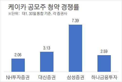 국내 최대 직영중고차 플랫폼 기업 케이카가 청약 첫날 오후 3시 기준 청약 경쟁률은 최고 7.39대 1로 나타났다.
