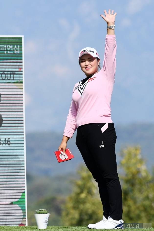KLPGA(한국여자프로골프)투어 '하나금융그룹 챔피언십'(총상금 15억 원) 1라운드 경기가 30일 경기도 포천시 경기도 포천 아도니스 컨트리클럽(파71·6480야드)에서 열렸다. 대회에 출전한 장하나가 1번 홀에서 티잉그라운드에 오르고 있다.