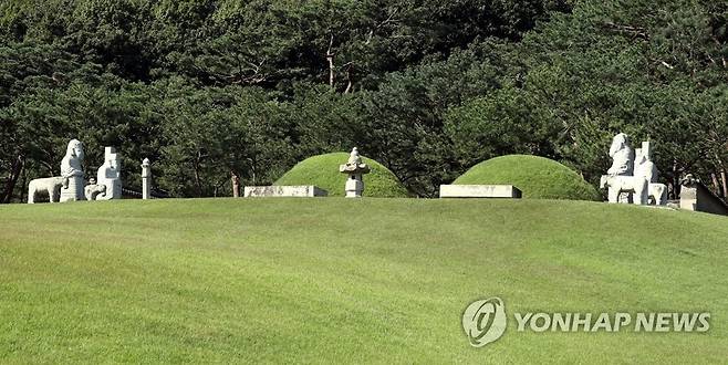 (김포=연합뉴스) 윤태현 기자 = 30일 오후 경기도 김포시 풍무동 장릉이 잘 정돈돼 있다. 사적 202호이자 유네스코 세계문화유산으로 등재된 김포 장릉은 조선 선조의 5번째 아들이자 인조의 아버지인 원종(1580∼1619)과 부인 인헌왕후(1578∼1626)의 무덤이다. 최근에는 반경 500m 안에서 신축 아파트 단지 3곳의 공사가 진행돼 문화재청이 공사 중단 명령을 내렸다. 이에 따라 이날부터 아파트 단지 2곳의 공사는 중단됐지만, 나머지 1곳은 집행 정지 가처분 신청이 인용되면서 공사가 계속되고 있다. 2021.9.30