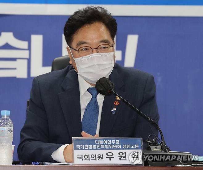 (서울=연합뉴스) 하사헌 기자 = 더불어민주당 제1기 국가균형발전특별위원장을 맡았던 우원식 의원이 30일 서울 여의도 국회의원회관에서 열린 국가균형발전특별위원회 출범식 및 제2차 공공기관 이전 간담회에서 인사말을 하고 있다. 2021.9.30 [국회사진기자단]