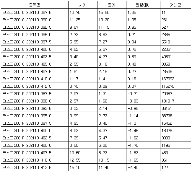 [표] 코스피 지수선물·옵션 시세표(30일)-3