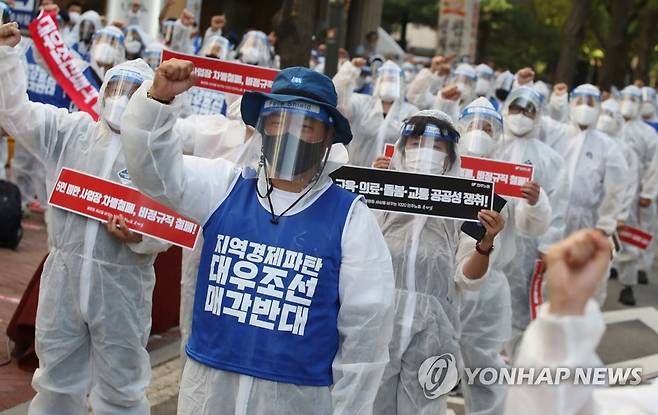 (서울=연합뉴스) 임헌정 기자 = 민주노총 조합원들이 30일 오후 서울 중구 정동 민주노총 앞에서 1020 총파업 전국동시 결의대회를 하고 있다. 2021.9.30