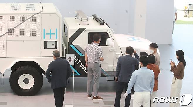 (창원=뉴스1) 여주연 기자 = 30일 오후 경남 창원시 성산구 창원시청 앞 광장에서 열린 '현대자동차 수소 모빌리티 로드쇼'를 찾은 관람객들이 차량을 살펴보고 있다. 2021.9.30/뉴스1