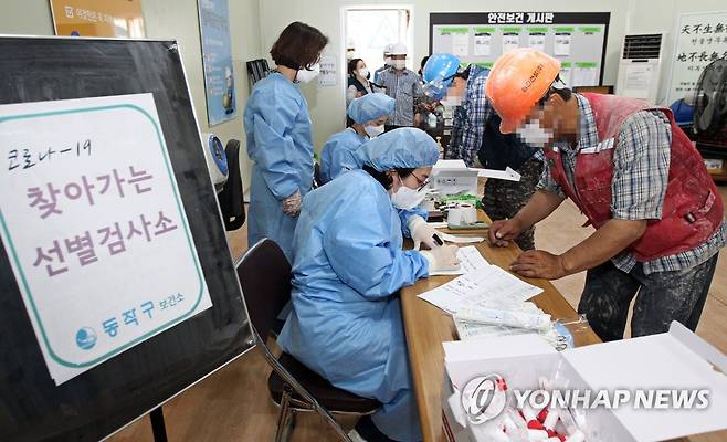 (서울=연합뉴스) 서울 동작구가 30일 관내 근로자 수 50인 이상 건설공사장을 대상으로 찾아가는 선별진료소를 추가 운영했다고 밝혔다.